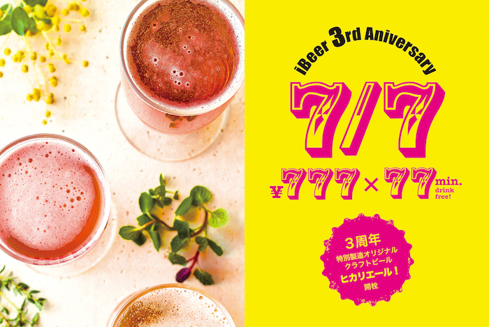 1号店の渋谷ヒカリエ店のオープン日である、7月7日は、七夕の日。今年でオープン3周年を迎えることを記念し、当日は、国産のクラフトビールのドラフト(生)約10 種をはじめ、ドリンク約35 種を77分間飲み放題で楽しむことができます。