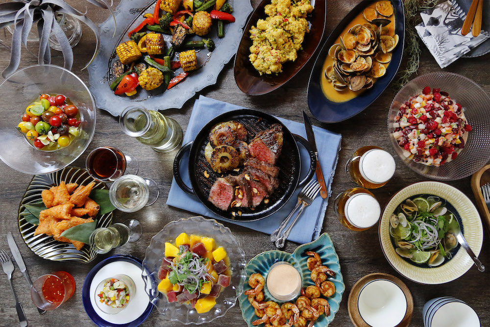 “恵比寿の楽園”をコンセプトに緑と花で彩られた美しく、妖しい植物空間で、風を感じながらビールを片手に美食を味わえます。リゾートスタイルにアレンジした海の幸やグリル料理は、”シロノニワ”がクリエーションし、ハーブやスパイス、ヴィネガー、エディブルフラワーなど、エキゾチックな香りを纏った品々は、旬の素材を活かしながら調理していく、レストランならではの夏のタパス&メインディッシュです。