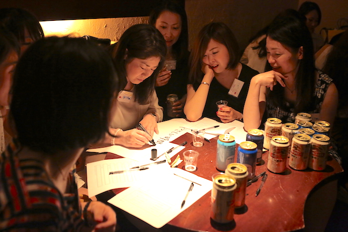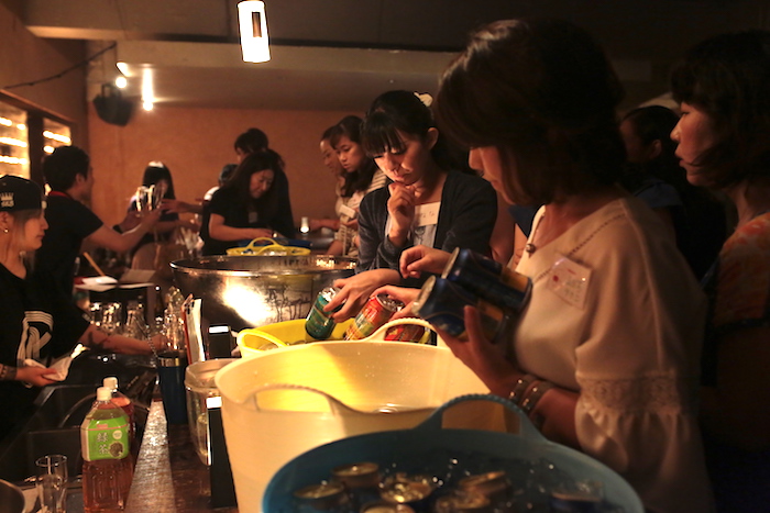 ビール片手に商品のキャッチコピーを考える皆さん。最初はぎこちなかった雰囲気も、ビールを通じて交流していくうちに、どんどん輪が広がっていきます。 ワークショップ後の交流会では、バラエティ豊かなビールやおつまみを囲んでビールトークに花を咲かせていました。