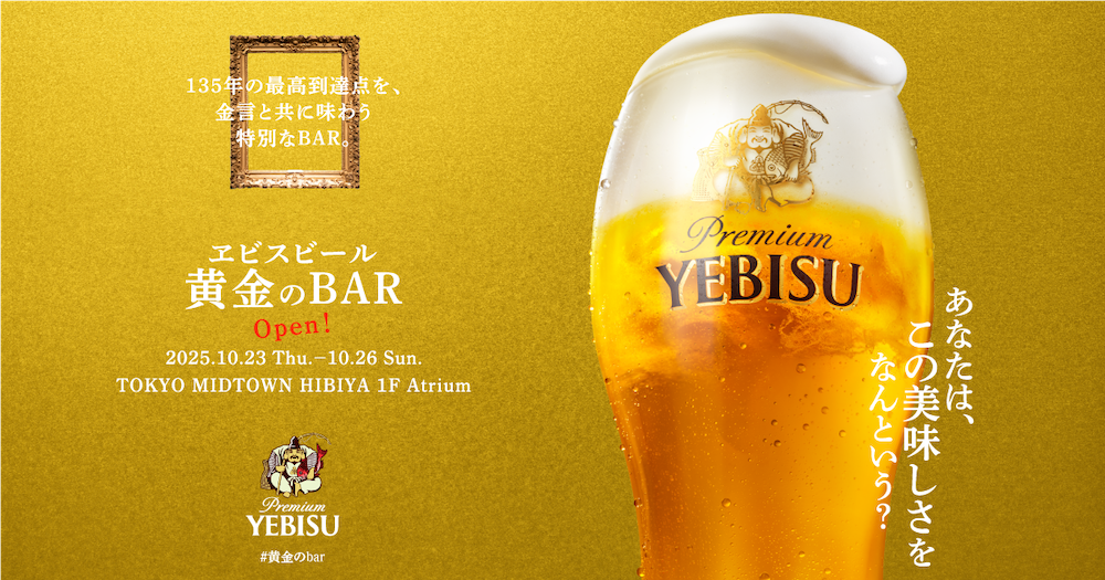 サッポロビール株式会社より、リニューアルしたヱビスビールの体験型ポップアップイベント「ヱビスビール 黄金のBAR」が、東京ミッドタウン日比谷にて10月23日(木)から10月26日(日)まで開催されます。