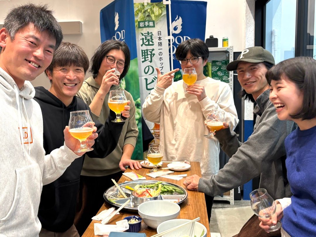 ここ約2年半の間に、移住してきた仲間が15人以上加わりました。GOOD HOPSのクラフトビールや、遠野で栽培された「IBUKI」を使用した一番搾りとれたてホップを片手に、今の課題や未来の展望について語り合うその光景を見ると、遠野で生まれている良い変化を実感できて本当に幸せです。「まだやれることがある」「もっと日本産ホップで面白いことを仕掛けていこう」と心から思える瞬間です。