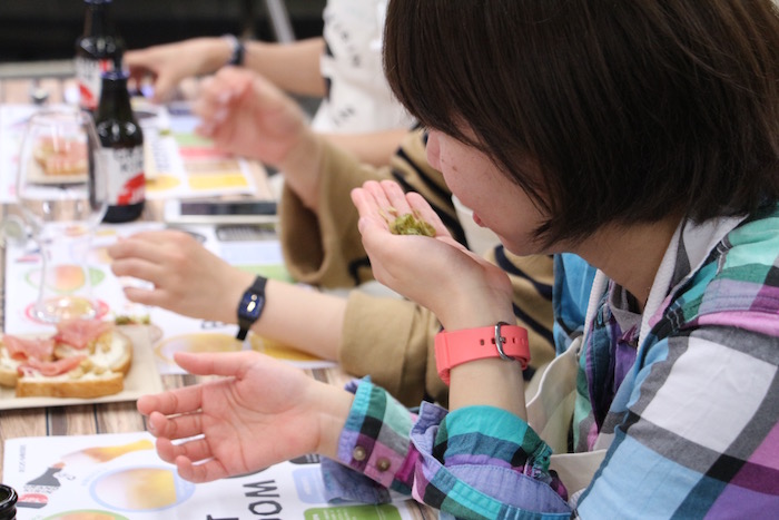 さらに「一番搾り」を使ってドライホッピングを疑似体験しました。「ドライホッピングする前と比べて、ありえないくらいの香りを感じる!」と驚きの声が続出。製法による香りの違いを楽しんでいました。