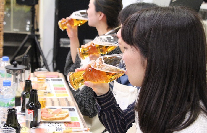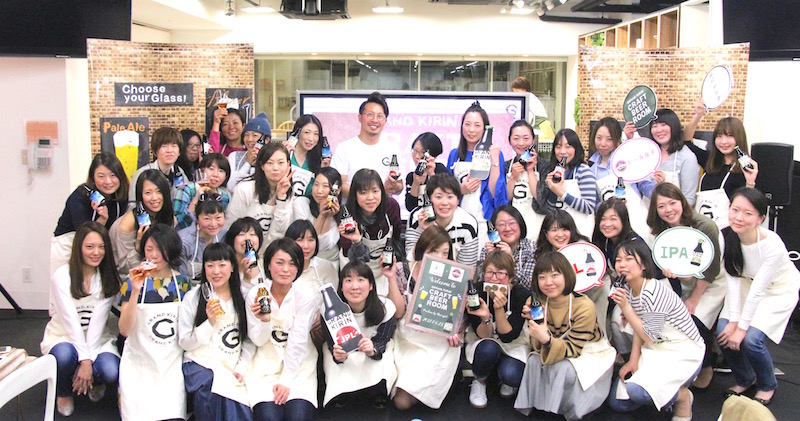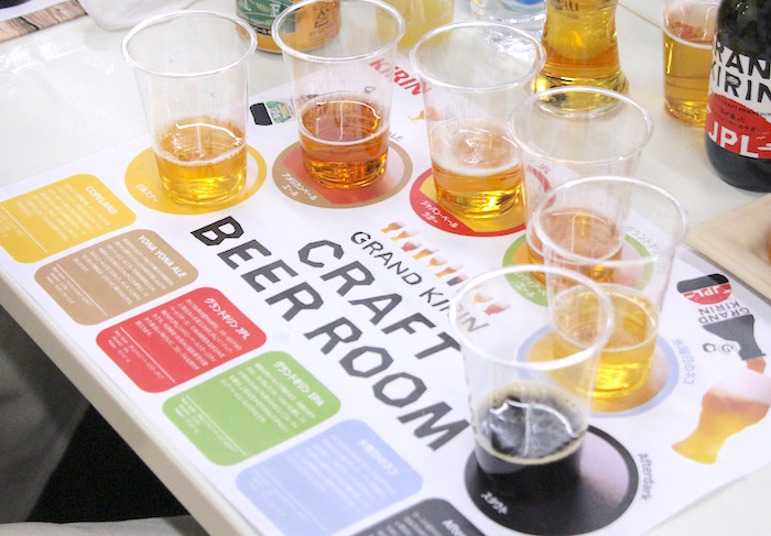 さて、ワークショップが終わった後は改めてカンパイ! ビールの種類別の飲み比べでは、この春発売された『グランドキリン IPA(インディア・ペールエール)』や、『グランドキリン ひこうき雲と私』など、7種類のクラフトビールが登場しました。