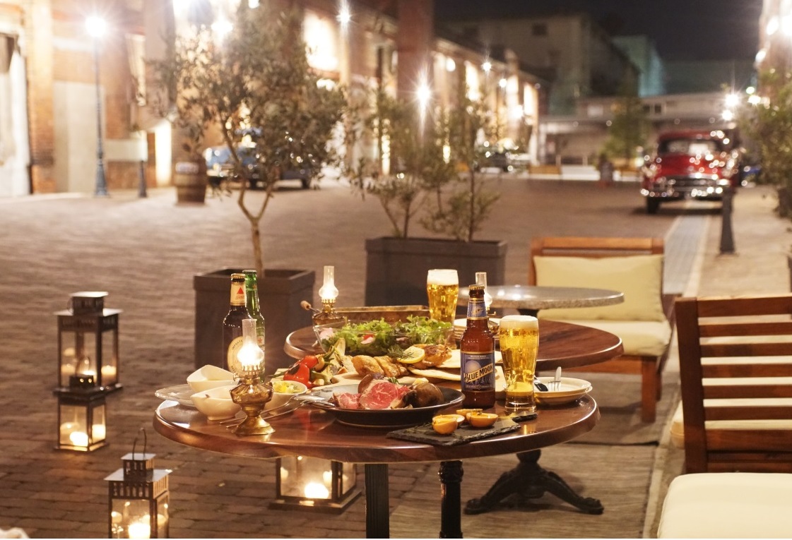 赤レンガに淡い明かりが灯るおしゃれな雰囲気の中、友達や恋人と飲む樽生ビールは格別です。気持ちのいい夜風を感じながら、じっくりと飲み比べをお楽しみください!