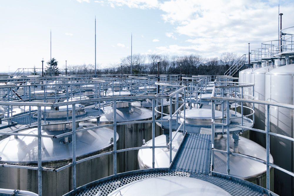 タンクにある数字は管理番号と容量、そしてタンクが設置された日付です。工場の設備が大切に扱われてきた歴史を感じることができます。
