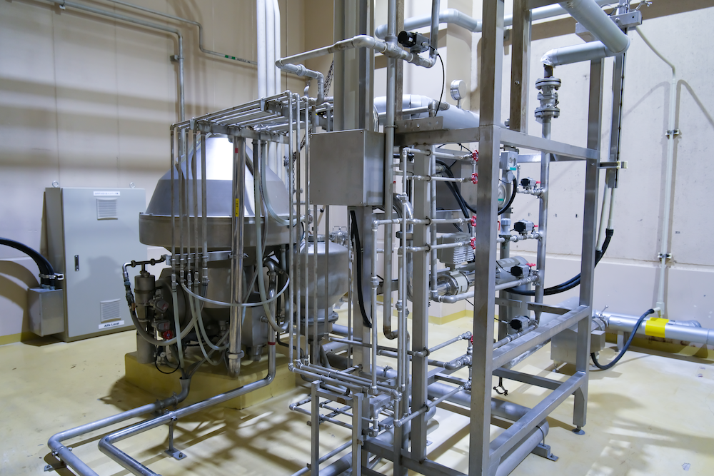さらに、酵母の培養室や調合室(発酵タンクに直接入れるような果汁などを調合)、遠心分離機(製品にする前のろ過の前に遠心力によって大きい不純物を取り除く)ゾーンを経てろ過室へ。