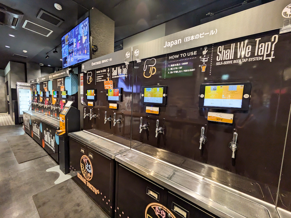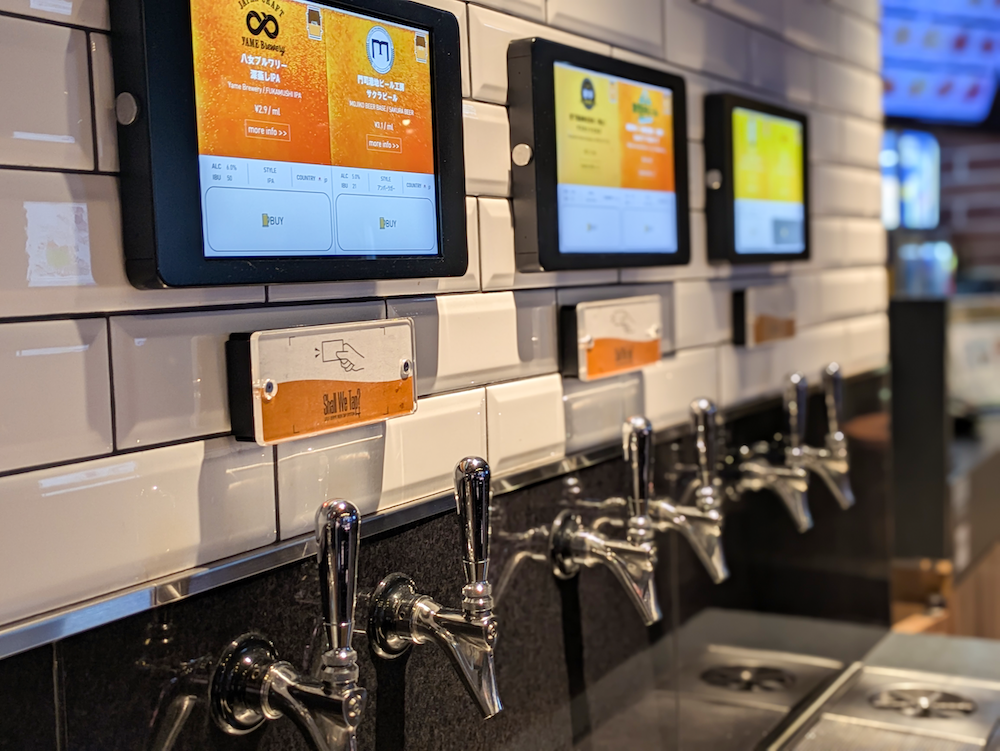 ビール好きにとって最大の魅力は、各店舗に設置されたセルフサーブビアタップシステム「Shall We Tap?」。