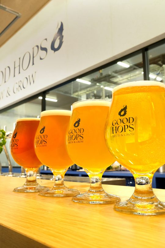 畑で芽吹いたホップが、研究と醸造を経て、タップルームで一杯のビールへと姿を変える。その瞬間に立ち会えるのが「GOOD HOPS」です。