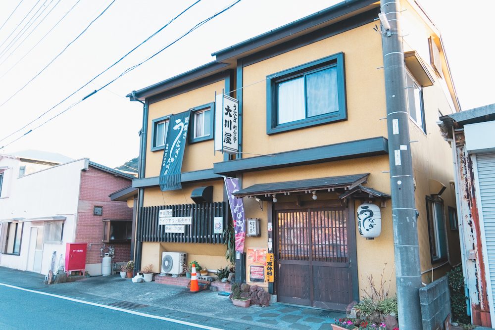 1軒目にお伺いしたのは、伊豆急河津駅より徒歩7分の場所にある、大正時代から百十年続く老舗のうなぎ屋「うなぎの店大川屋」(以下、大川屋)。