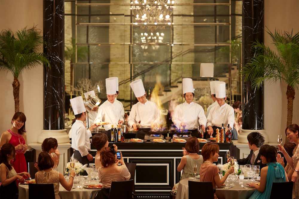 大迫力の音楽と、音に反応して色を変えるLEDライトを駆使したシェフによるパフォーマンスタイムは、結婚式でも人気のドラマティックな演出します。