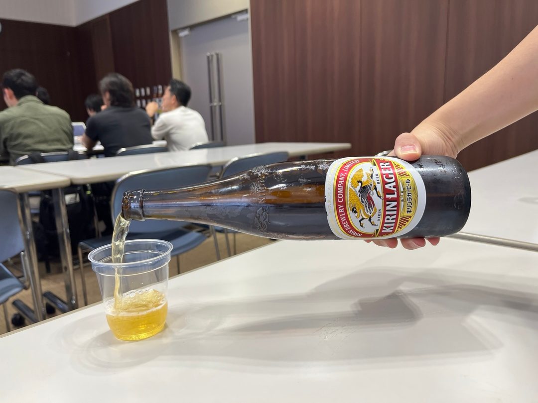 キリンのビールで乾杯しビールを飲みながら、キリン・ブルワーのみなさんに今回の感想についてお話を伺いました。