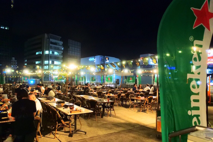 このビアガーデンの大きな魅力は、明るくて元気な雰囲気。オープンエアの開放的な雰囲気の中、お肉からおつまみ、デザートまで多彩なフードが楽しめるうえにショーやイベントもあり、大人も子供も一緒になってお昼からワイワイ騒ぎたくなる雰囲気です。