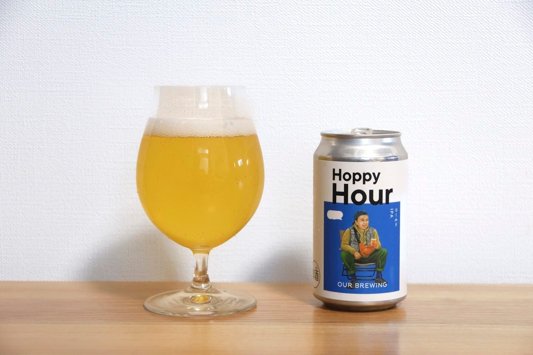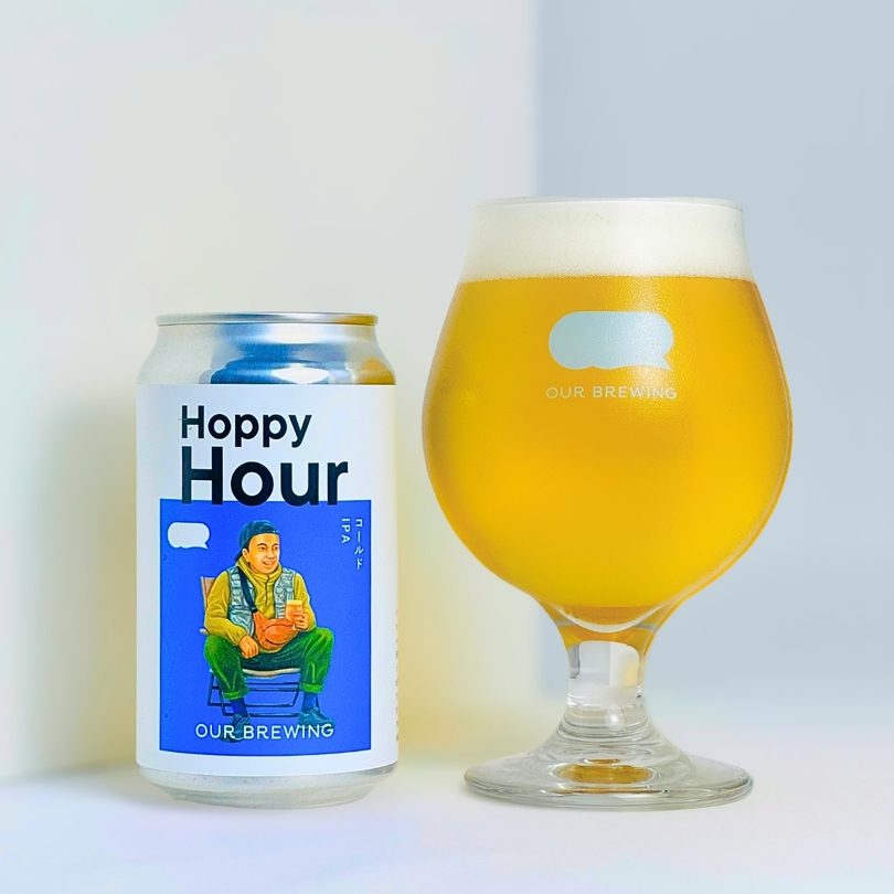 OUR BREWINGのフラッグシップ3種のうちのひとつである「Hoppy Hour」。ビアスタイルはコールドIPA。International Beer Cup 2024で金賞を受賞しています。日本はもちろん世界中で親しまれてきたラガーの製法にドライホッピングを重ね、クラシックとモダンが同居する味わいに。ラガーらしい清涼感に、米とブドウ糖で加えたドライなキレが合わさり、ホップの表情がよりクリアに立ち上がります。原料の一部には、福井県産コシヒカリと福井県産六条大麦麦芽を使用しています。