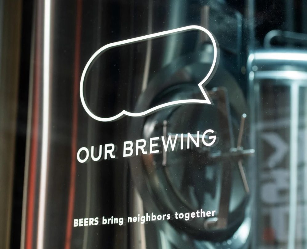 統一感のある洗練されたデザインの中にぷかっと浮かぶ、OUR BREWINGのロゴマーク。