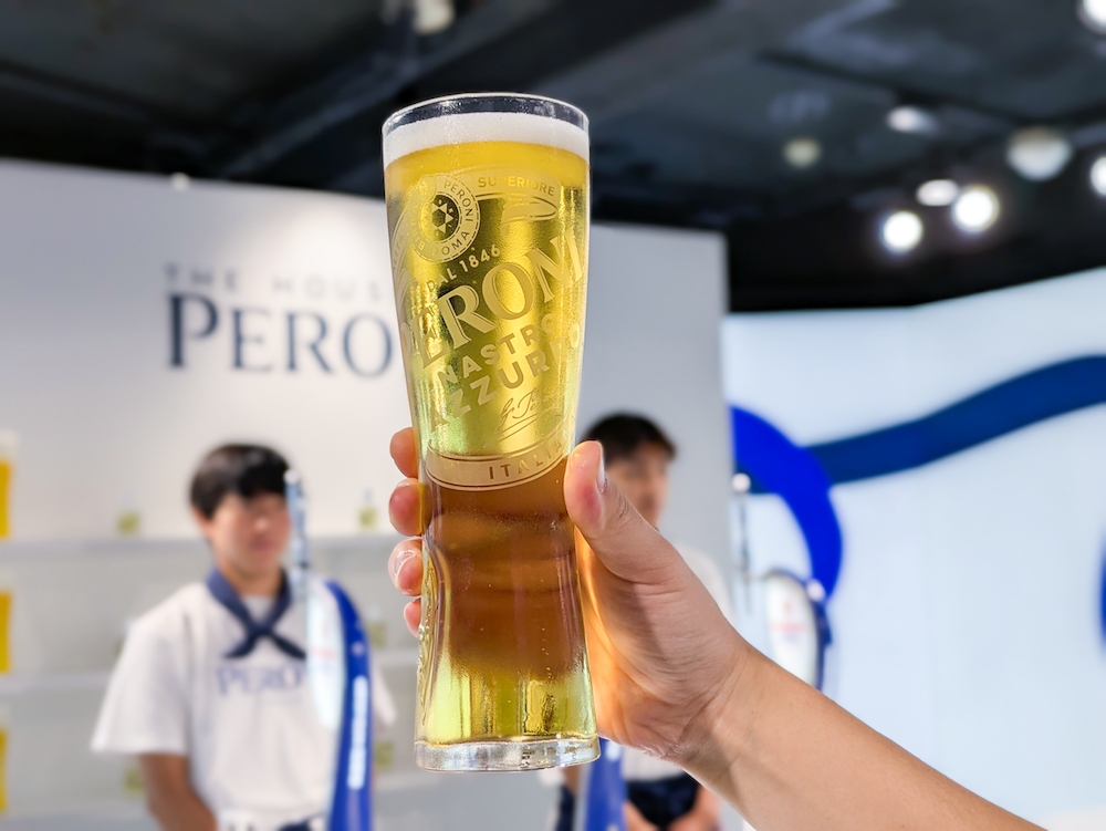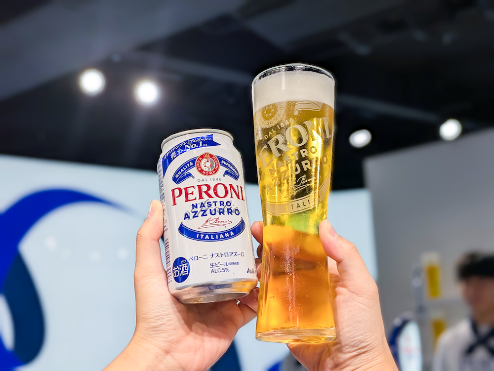 缶のラベルデザインにも注目を。ブランドカラーである青と白を基調に、中央には力強く「PERONI」のロゴが配置され、どこか誇り高くスタイリッシュな雰囲気。写真映えするデザインで、飲む前から気分を盛り上げてくれます。