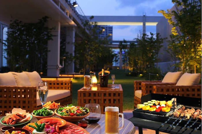 こちらのビアガーデンの素敵なところは、なんと言ってもそのロケーション。六本木という東京のど真ん中に、開放的で緑あふれる屋上庭園があります。期間中はBBQグリラーがセッティングされ、テーブル席やソファー席も登場。