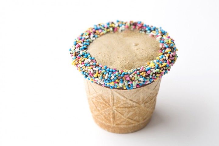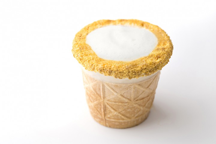 コーンショットとは、ワッフルコーンの中をチョコレートでコーティングしたスイーツで、飲み物のカップとして使われます。飲んだ後はカップまでおいしく食べられる、子供の頃に憧れた夢のスイーツです。