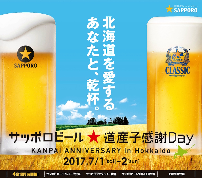 サッポロビール株式会社は、2017年7月1日(土)と2日(日)の2日間、北海道内の4会場にて、「サッポロビール★道産子感謝Day」を開催します。