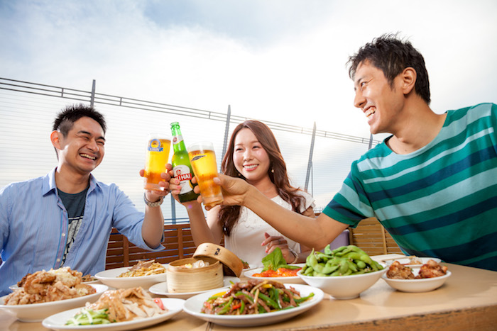夏の風物詩となっているこのビアガーデンは今年で5回目の開催ですが、今回は新たに「アジアンビール」が数種類登場。アジアンビールを飲んで、アジアのリゾートへ海外旅行した気分を味わっちゃいましょう。