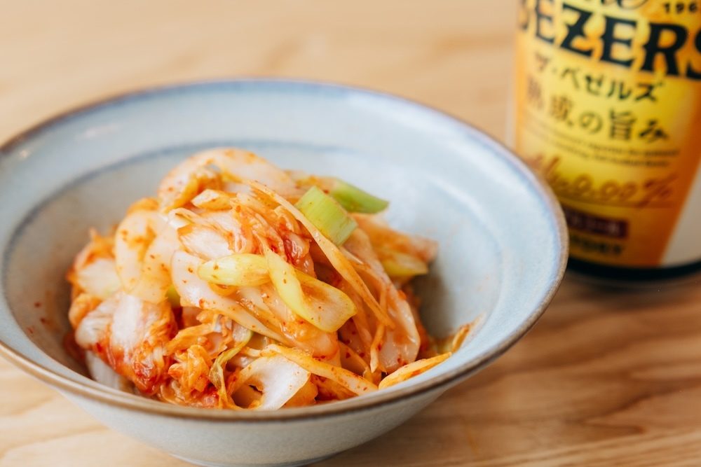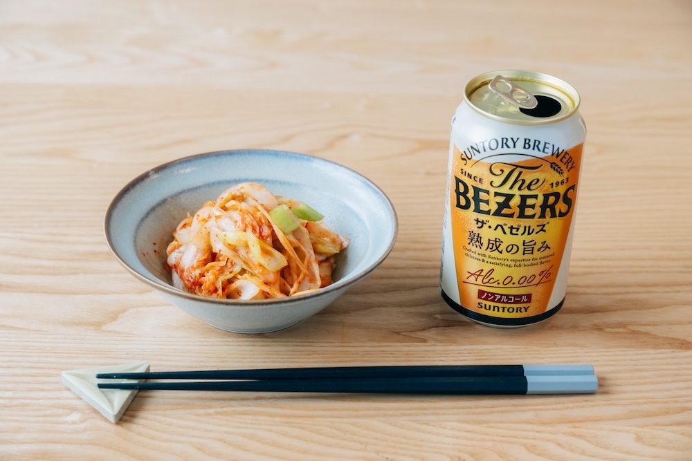 いか燻の香ばしさと「ザ・ベゼルズ」が合う! 2日目にして、燻製系は「ザ・ベゼルズ」との相性抜群だという気づきを得る。長ねぎはたっぷり入れるのが正解で、シャクっとした長ねぎとキムチ、いか燻の味わいを、「ザ・ベゼルズ」が引き立ててくれる。