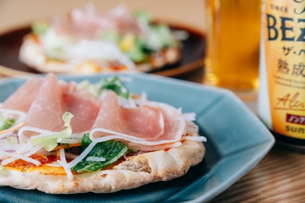 マルゲリータソースの酸味、生ハムの塩気と「ザ・ベゼルズ」の泡が合わさると、口の中で小さな打ち上げが始まる。追いチーズは優勝者。とろ〜り感も相まって、「ザ・ベゼルズ」の濃厚さの余韻に、もう一段コクが足される。
