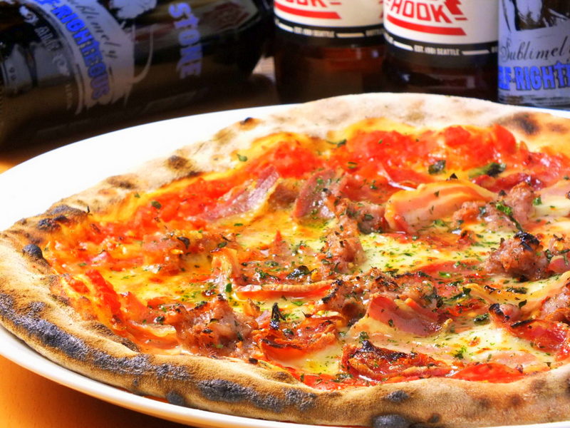 また、バッファローウィングやスペアリブなどのアメリカ料理、直輸入の石窯で焼くカリフォルニアスタイルのピザを提供しています。窯だけでなく薪にもこだわった味をお楽しみください。おすすめビール