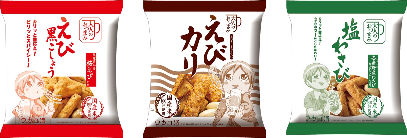 今年70周年をむかえる岩塚製菓株式会社(以下、岩塚製菓)は、人気アニメ「ワカコ酒」とコラボしたパッケージの「大人のおつまみシリーズ」を、2017年6月1日(木)より3ヶ月間の夏季限定で販売します。