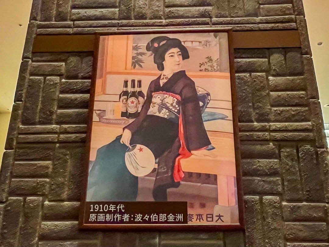 まずは、ヱビスの歴史ともいえる美人画ポスターのルーツを辿る展示から見てみましょう。知識を深めてから令和の美人画をみると、より感慨深い体験になるはず。