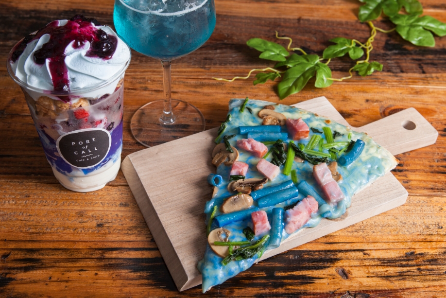 また、ジョイナス「サモアール」のビッグレインボーケーキやビブレ「PORT OF CALL YOKOHAMA」の「街バルブルーPIIZZA」など、一部店舗では今回のイベント限りのブルー系メニューが提供されます。その鮮やかさや涼やかさはSNS映えもばっちり。テイクアウト店舗もあるので、暑い街を避けて自宅で街バル気分に浸ることも可能です。